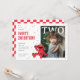 A cheerful Elmo illustration adds personality and excitement to the layout, while the oversized “TWO” layered across the photo makes a strong, stylish statement. The large photo area allows your little one’s picture to shine, creating a sweet focal point against the festive design. Customizable name and party details are arranged in a clean, modern layout that feels both playful and polished.