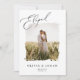 This modern yet elegant elopement announcement features a script greeting that says "Eloped", rustic photo frame, and classic typography. Customize it further by adding additional text or photo to the back.