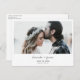 This simple, stylish modern photo wedding elopement announcement postcard template features your names in a lively handwriting script beneath your photo. You might choose to change the font, punctuation or color used for various text elements of this design on the front and/or back. For example, you might choose to give a certain color to your name text, or change the We Tied the Knot! text on the back to We Got Married! Or another message that suits your style. You might choose to delete something or change a text field entirely with a different message. For example, you might decide to change the names format on the front to include your last name, or to a Mr. and Mrs.(last name) format, etc. On both sides we've made the background transparent to let the color of the paper simply serve as the base tone. You can edit this and pick a color if you prefer. We've put some placeholder text on the back for you to delete and replace with your own message, with or without your names, if you want to sign by hand when you get the postcards. But you might also simply choose to delete our placeholder text and leave the back entirely blank so that you can write a message by hand on each card and sign your names. The default paper type, matte, has a soft warmth to it and resists smudging, so it's a great choice for writing your own message, if you choose to do that. You can edit this and choose semi-gloss instead. In any case please do remember that there's placeholder text on the back as well and to delete all of our sample/placeholder text on both sides of the card, as well as our sample photo! The default text color on both sides is a very dark gray that's mostly black, but you can change the color, font and text size. We hope you'll enjoy experimenting with this crisp, contemporary photo elopement announcement postcard and make it uniquely yours with the intuitive design tools, your favorite photo and your inspiration. And please check our store for more simply chic modern elopement cards in various formats!