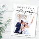 Modern elopement or private wedding announcement and reception invitation postcard. The front features your photo, "Happily Ever After Party" in a mix of simple typography and a trendy script with swashes and your names and wedding date. On the reverse side, personalize your announcement and invitation and add your names in a signature-like script.