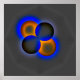 Elumination, a 3D orange four shape with blue glow on a dark background, stunning print or canvas.
