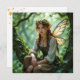 A mystical ethereal blank card featuring an elven fairy in vintage dress sitting on a tree branch.