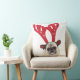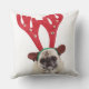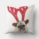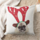 Embarrassed looking Pug wearing Reindeer Antlers Throw Pillow
