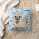 Embarrassed Pug with Unicorn Hat on Throw Pillow