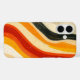 This case displays glowing ribbons of orange and black curving like streams of lava. A dynamic and fiery abstract look.