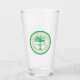 Glass Cup with emblem of city of Miami, Florida; flag with three horizontal bands of orange, white and green with emblem with an illustration of a palm tree in the center