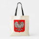 This design is the distinctive emblem of poland. It is set on a red background and really stands out. This emblem of Poland design looks great on this tote bag. Perfect for yourself or as a gift
