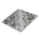 Ornate and elegant design features richly textured black leaves and curled vines given a dimensional embossed effect digitally on a silver background.