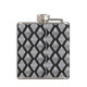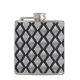 A stylish graphic print on a custom flask. Good for a modern gift, or for a decor with an automotive urban industrial look.