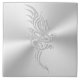 An eastern-style dragon with an embossed look on a shiny, radial effect silver background