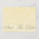 Outline of fully opened rose done in a gold embossed treatment. Save the Date written on front. Customize inside for your occasion