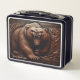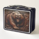 Embossed Grizzly: Strength in Leather Metal Lunch Box