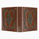 Photo of the cover of a handsome antique embossed document box in brown, green and gold, circa 1900.