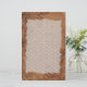 This stained and aged leather look paper with embossed floral design on opposite corners is covered with a torn edged lace overly for easy writing that is removable at the time of order- Vintage papers that give an old antique look to any stationery you use them with- ancestry work, scrap booking, vintage invitations handwritten or ink jet printed- vintage style stationery, photo albums, and genealogy albums. Note: This paper is not actual parchment