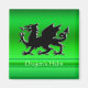 A great design featuring a stylized embossed-looking black heraldic dragon standing in the passant guardant aspect. On a green chrome-effect background with a green brushed metal-effect stripe, you can change the text to what you want or blank it out. You could use your initials as a monogram, if you like - your choice!