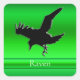 Embossed-look Black Raven on green chrome-effect Square Sticker