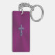Embossed-look Gothic Cross in Purple with Monogram Keychain