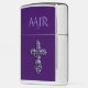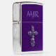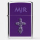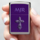 Embossed-look Gothic Cross in Purple with Monogram Zippo Lighter