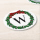 Embossed Look Holly Wreath Monogram Round Paper Coaster