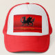Embossed-look Red Dragon on red chrome-effect Trucker Hat