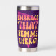 Carry your "Embrace That Femme Energy" with you wherever you go with this sleek and empowering thermal tumbler. Featuring bold typography, this tumbler is the perfect way to keep your drinks hot or cold while showing off your strength and confidence. Whether you're sipping coffee, tea, or water, this tumbler is both functional and stylish—ideal for those who love to showcase their feminine energy while on the move.