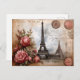 A Parisian adventure awaits as you open this enchanting postcard. A graceful Eiffel Tower stands tall against the backdrop of a pastel pink sunset. Delicate pink roses in full bloom frame the tower, adding a touch of romance and warmth.