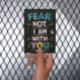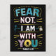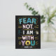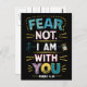 A postcard featuring the words fear not, i am with you in a bold, reassuring font. The words are surrounded by soft pastel colors and delicate floral designs, creating a feeling of peace and security.