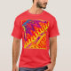 My 11 yo wore adult XL (5’7” 165#). The 8yo is small framed. She wore adult small and tied it in the back. Grandma wore adult large with long sleeve shirt underneath. Tall girl adult medium. Dark haired male adult large. Good quality dark Heather gray, Gildan brand shirt. -it was next up from basic choice and cost about $20 per shirt. Not too thick or thin. Washed and dried well, no major shrinkage. Not see-through. Can wear a bra under it fine. Screen print is just as shown and well done, front and back.