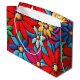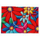 Embroidery abstract daisy flower pattern in red, yellow, blue, and green colors.