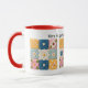 Unique and colorful patchwork quilt patterned mug that quilters and sewing artists will love. Printed with images of patchwork quilt blocks and embroidered flowers with realistic looking details. A text caption "When life gives you scraps, make a quilt" can be edited to other text in the easy Zazzle editor if desired. Customize it further with your favorite style, size and color selections.