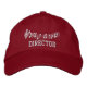 Fun musical notes on staff design highlight this red hot music Director hat for choir or band.