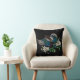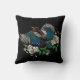 Embroidery Design Magpie Bird White Flower Black Throw Pillow