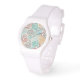 I was pleasantly surprised by the good quality of this watch. It's an easy size to wear on a small wrist and both the band and the watch are well made. I also liked the translucent case the watch is packaged in. The printing is crisp and clear and shows off my Create With Photos oyster flower design well.