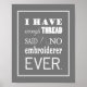 Embroidery Not Enough Thread Craft Room Dark Poster