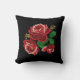 Beautiful embroidery design throw pillow featuring red roses and bud with green leaves on black background makes an amazing home decoration. Perfect gift for birthday, wedding or housewarming party. A great gift for those who loves embroidery and nature.