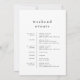 This simple wedding weekend itinerary template from the Emelia Collection is perfect for a minimalistic wedding. The black and white design features modern boho unadorned typography with a unique minimalist style.