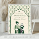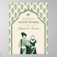 Traditional Sikh wedding welcome sign featuring an elegant illustration of a Punjabi couple with modern typography on beautiful Indian pattern background with arch.