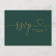 A simple, elegant gold heart script on an emerald background RSVP card. The reverse features your details and a fun guest song request. Designed by Thisisnotme©