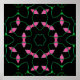 A striking abstract design featuring glowing green geometric forms intertwined with vivid pink petal shapes, set against a deep black background. This kaleidoscopic artwork blends digital symmetry with floral inspiration, creating a bold, modern mandala that feels both organic and futuristic. Perfect as statement wall art, home décor, apparel, or accessories for lovers of vibrant colour, sacred geometry, and contemporary abstract design.