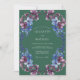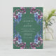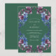 An exquisite emerald green background frames a cascade of delicate blue and violet blossoms. This design evokes a sense of sophisticated enchantment with its rich color palette and airy floral arrangement. Perfect for a romantic, nature-inspired union.