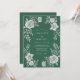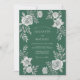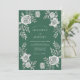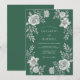 Delicate white floral illustrations adorn this deep emerald background, evoking a classic and romantic mood. Lush roses and lilies are interspersed with foliage, creating an elegant and timeless design for a special occasion. The monochromatic artwork adds a sophisticated touch to the overall aesthetic.