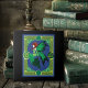 An enchanting emerald green fairy floats gracefully within an ornate green Celtic knot frame, her vivid green wings and flowing green dress against a deep blue backdrop. This fantasy artwork blends Celtic symbolism with mystical fairy lore, creating a striking and elegant design full of movement and magic. Perfect for lovers of fairies, Celtic art and folklore.