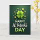 This design shows a large four-leaf clover centered on a deep forest-green background, shaded from bright lime at the middle to darker emerald along the rounded edges, giving it a soft, cushioned look 💚. Around it, smaller shamrocks drift like a loose constellation, and scattered gold coins catch the light with tiny clover marks pressed into their faces ☘️. The gentle glow and faint shadows make the clover and coins feel close enough to touch, like a lucky charm being offered to someone you care about. The arrangement feels like a quiet exchange between friends, with the main clover taking center stage while the smaller shapes gather near it like supportive company. Along the lower portion, the text reads “HAPPY St. Patrick’s DAY,” aligned near the bottom edge as a steady anchor. “HAPPY” appears in bright white, “St. Patrick’s” is written in flowing white lettering, and “DAY” is set in a lime green that matches the clover’s center. Fine sparkles are sprinkled across the dark background, with soft highlights glinting on the coins and tiny shamrocks.