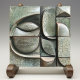 This masterfully crafted ceramic tile is a testament to abstract artistry, featuring an assortment of geometric and biomorphic shapes that create a mysterious yet harmonious tableau. The color palette is rich with verdant hues, including emerald green, forest moss, and mint, complemented by deep espresso outlines that enhance the visual depth of each segment. The surface is adorned with a network of fine crackles, mimicking the delicate veining of leaves, which contributes to the naturalistic allure of the piece. A subtle interplay of shadow and light is achieved through the crackled glaze, giving life to the colors beneath, ranging from alabaster white to warm sepia tones at the edges. Ideal for those who appreciate the beauty of natural imperfections and the sophistication of modern design, this tile will elevate any room with its unique character and earth-inspired elegance.