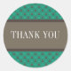Trendy and chic Fancy Lattice Thank You Stickers featuring a stylish circle and diamond studded pattern over a vibrant emerald green background with a broad two-toned brown border. These elegant thank you stickers are perfect for a modern wedding. Easy to customize, simply add the personalized text of your choosing. Click "Customize It" to find more personalization options.