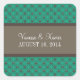 Trendy and chic Fancy Lattice Wedding Stickers featuring a stylish circle and diamond studded pattern over a vibrant emerald green background with a broad two-toned brown border. These elegant wedding stickers are perfect for a modern wedding. Easy to customize, simply add your wedding details in the text fields provided. Click "Customize It" to find more personalization options.
