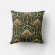 Emerald Gold Art Deco Pattern Throw Pillow