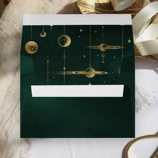 Emerald Gold Crescent Moon Wedding Envelope Seal
