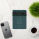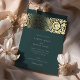 This stunning wedding invitation features a luxurious dark teal background complemented by an intricate gold floral design that adds a touch of elegance and sophistication. The invitation is perfect for couples seeking a classic yet stylish announcement for their special day. The front of the card showcases a delicate floral border in rich gold tones, adding a regal touch to the deep teal backdrop. The reverse side continues the floral motif in a monochromatic dark teal pattern, with subtle initials adding a personal touch. The elegant serif font in white adds a crisp contrast, ensuring your event details stand out beautifully. This invitation is ideal for a formal wedding, blending timeless botanical artistry with a modern color palette.