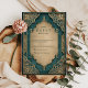 An opulent Islamic wedding design featuring a teal and gold arched frame inspired by mosque architecture and Persian artistry. With intricate floral motifs and geometric symmetry, this invitation exudes elegance, spirituality, and timeless cultural refinement — ideal for a luxurious Islamic wedding.